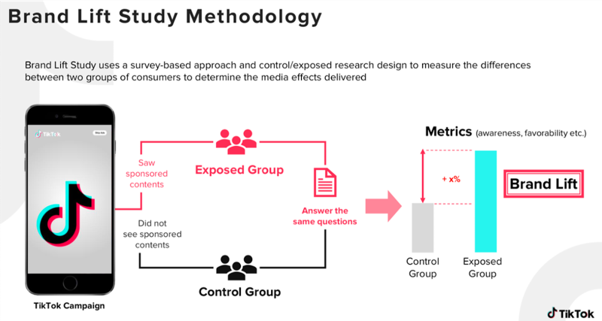 TikTok include a Nielsen brand lift study to measure uplift in brand awareness and preference for your ad. Metrics involve association, attitude, favourability and ad recall.